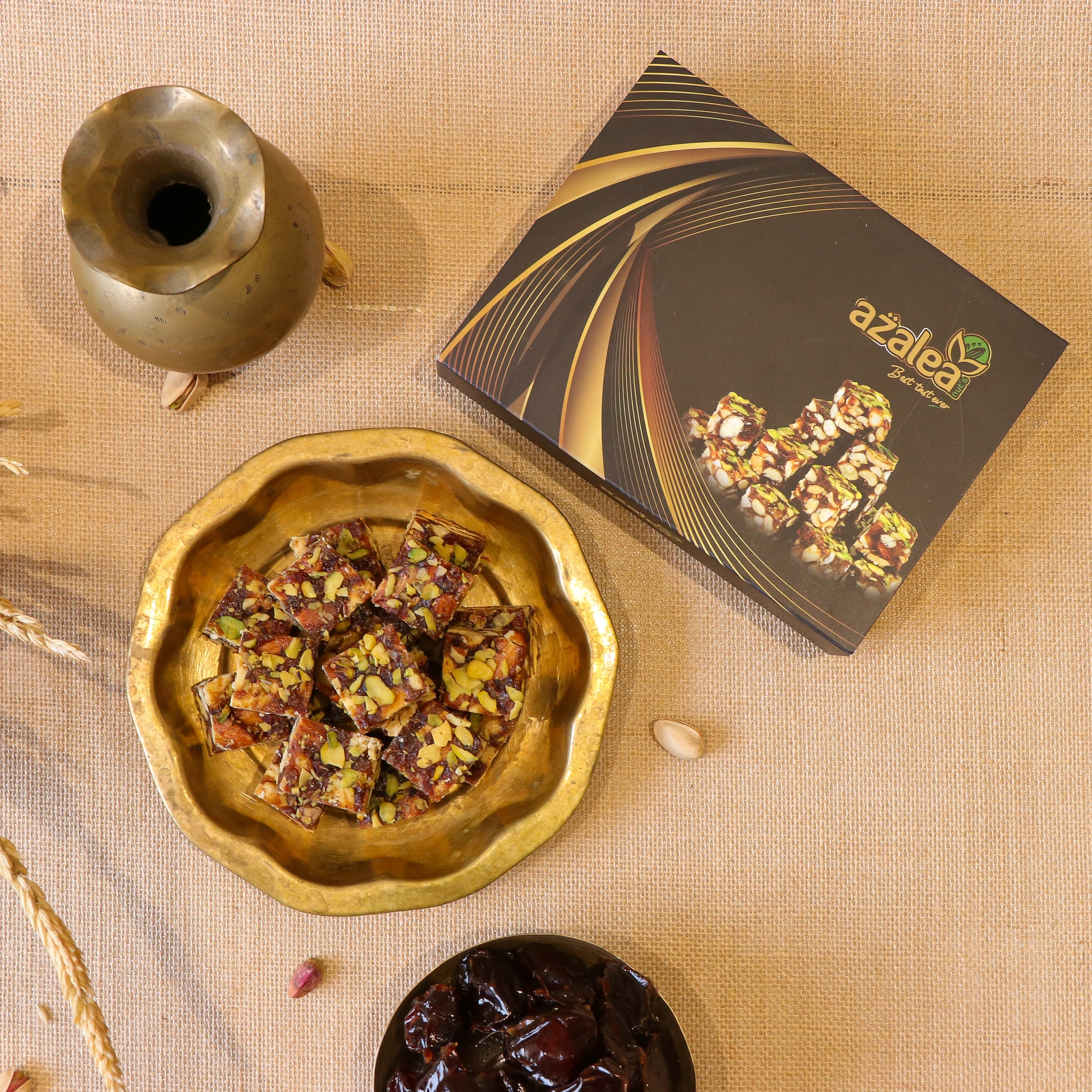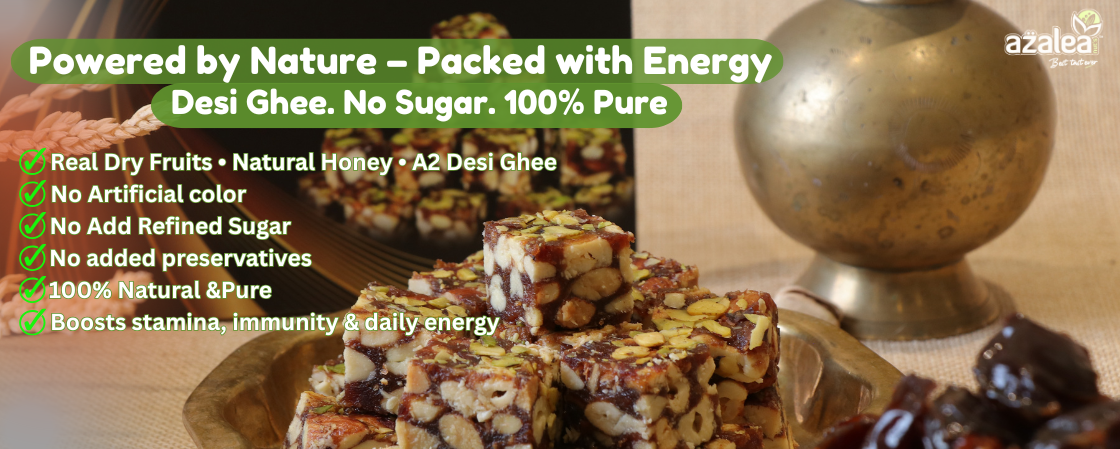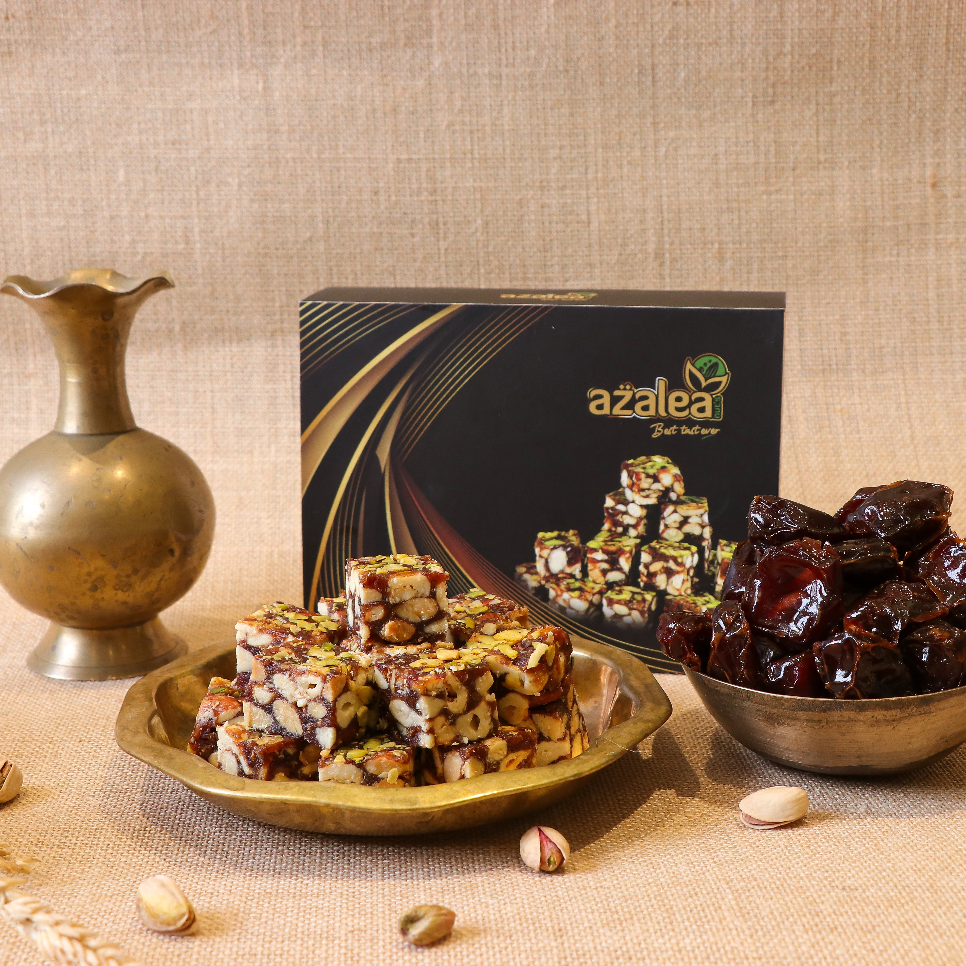 Known for its purity and ayurvedic benefits, A2 ghee improves digestion and immunity.It gives the Azalea dryfruits chikki a rich aroma and melts-in-mouth texture.